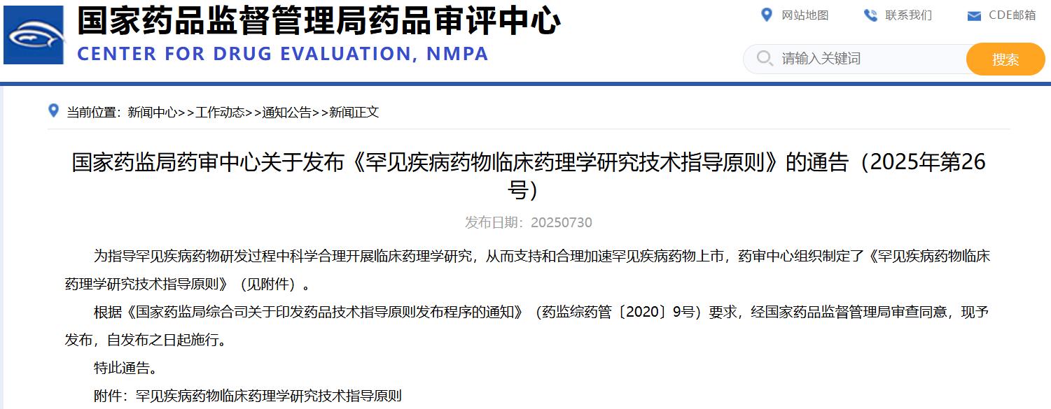 國家藥監局藥審中心關于發布《罕見疾病藥物臨床藥理學研究技術指導原則》的通告(2025年第26號)