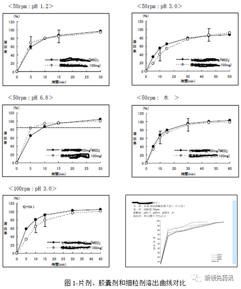 研究初期,通過對比日本上市的不同劑型,表明片劑、細粒劑、膠囊劑之間可能是生物等效的。細粒劑的處方組成設計與膠囊劑不同,其釋放速度更快。因此我們可以有把握地推測,分散片(快速體外行為)與膠囊劑具有生物等效性。