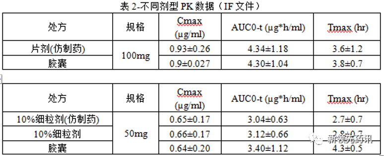 上述研究提示,該頭孢在不影響安全性和有效性的情況下,可設計不同的劑型。片劑和細粒劑與已獲批的膠囊劑型具有生物等效性。模型結果表明,原料藥為BCS IV類,其吸收不受處方組成和體外溶出的影響,這也是本品種有多種劑型獲批的原因之一。