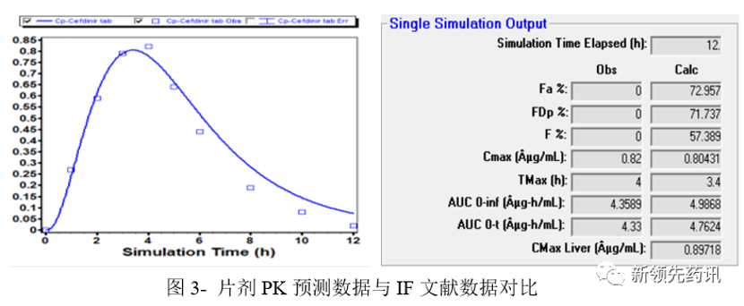 結論:以上數據表明,模型預測該品種片劑Cmax、AUC、Tmax值與IF文獻值基本一致,證明開發的模型預測良好。