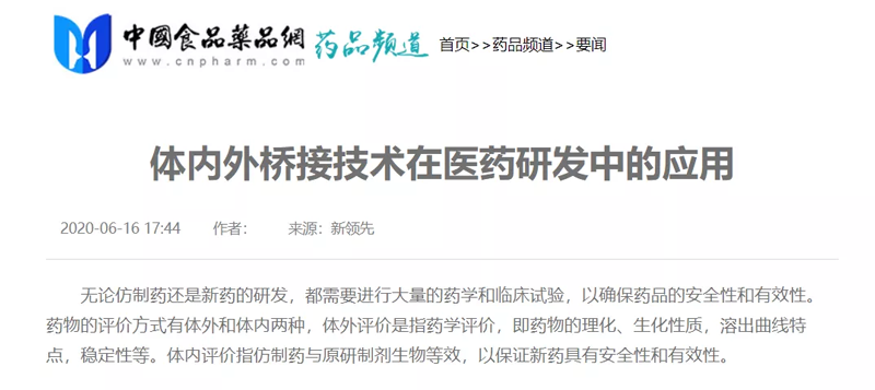 體內外橋接旨將體外評價與體內評價,通過建立模型,將兩者建立相關性。采用體外研究結果,通過模型,預測體內的藥動學和藥效學參數。實現藥學研究與臨床試驗的對接,提高臨床試驗的成功率,縮短藥物研發時間,為制藥企業節約藥物研發成本。