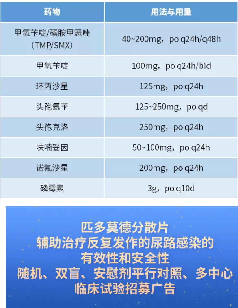 研究目的:評價匹多莫德分散片輔助治療反復發作的尿路感染的有效性;評價匹多莫德分散片輔助治療反復發作的尿路感染的安全性。