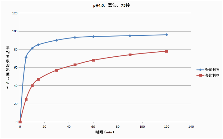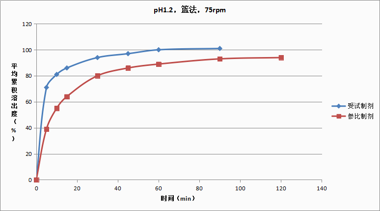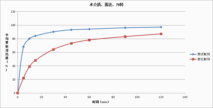 相同規格的原研細粒劑的體外溶出曲線如下: