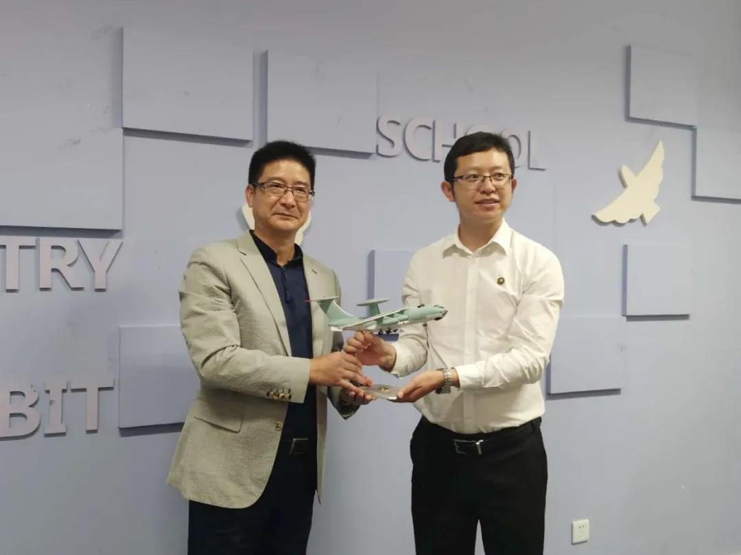 北京理工大學化學與化工學院院長張加濤向新領先陶新華董事長贈送禮品。
