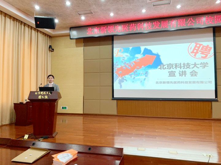 目前,已在北京化工大學和北京科技大學開展了宣講。北京化工大學的宣講會現場有北京新領先醫藥副總裁張翔先生為此次宣講會致辭,有學姐進行經驗分享,公司宣傳片的播放吸引在場同學,同學們積極提問,人力資源部總監于雪麗耐心解答,現場氣氛活躍。