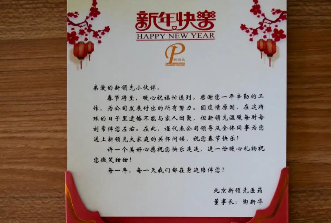 吃的飽飽的,兜里鼓鼓的,新領先為每位在京過年無親友陪伴的員工發放新年賀卡和價值500元的京東購物卡。