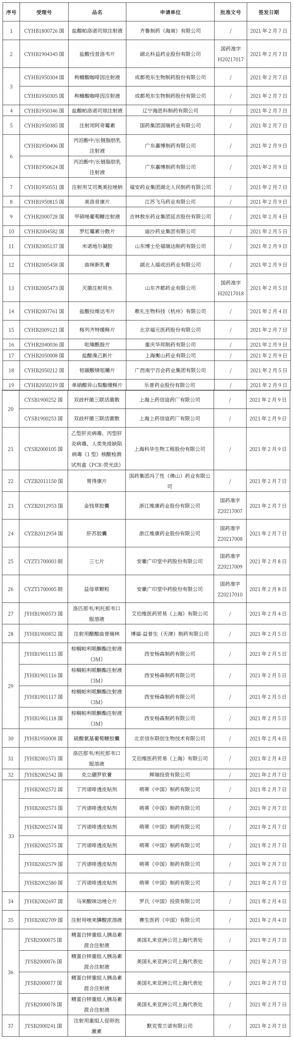本周共計37個品種獲批取得藥品批準證明文件,其中一致性評價品種10個,包括注射劑品種6個。