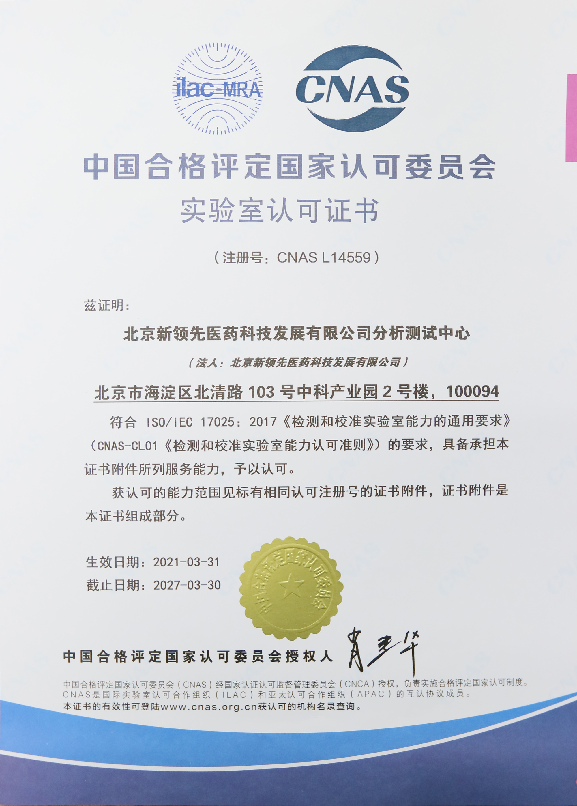 喜訊 || 熱烈祝賀新領(lǐng)先醫(yī)藥分析測試中心通過CNAS認(rèn)證!