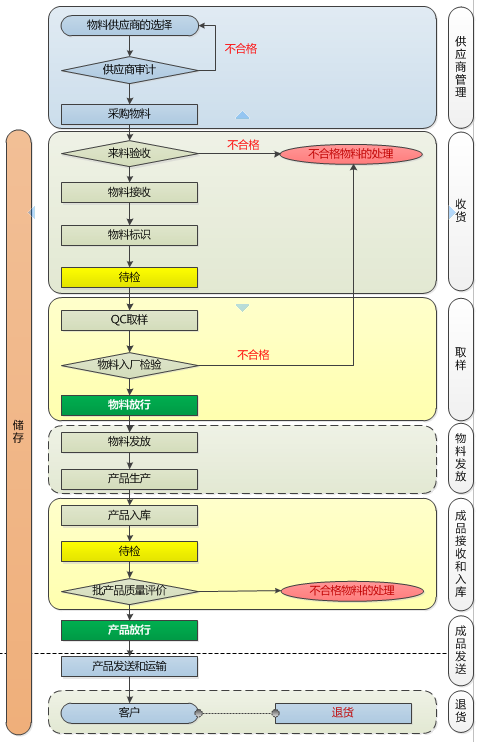 企業(yè)應(yīng)建立書面的管理程序規(guī)定:區(qū)域狀態(tài)標(biāo)識牌、貨位狀態(tài)標(biāo)識牌的使用、存放和 管理;貨位狀態(tài)標(biāo)簽和物料狀態(tài)標(biāo)簽的接收、發(fā)放、使用和銷毀管理并應(yīng)有記錄。質(zhì)量管理部門負(fù)責(zé)建立和實(shí)施物料和產(chǎn)品的合格標(biāo)簽、不合格標(biāo)簽接收、發(fā)放、使 用、銷毀管理流程,并負(fù)責(zé)決定以下質(zhì)量狀態(tài)的轉(zhuǎn)換。