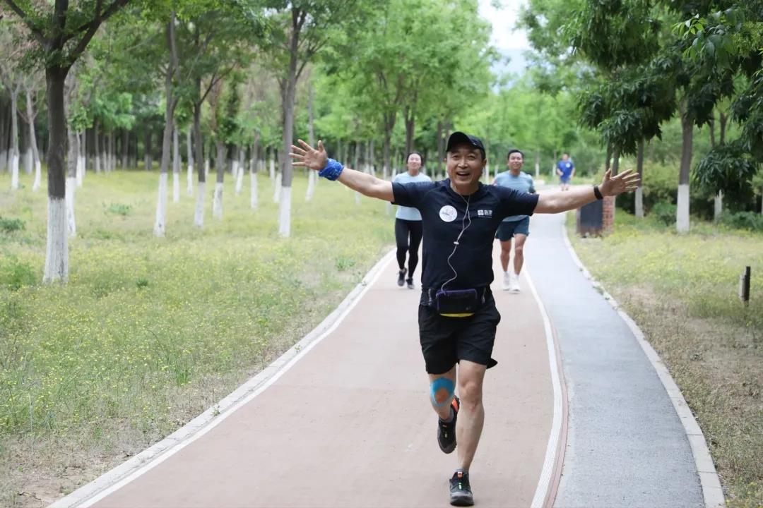 長長的賽道熄滅不了的是沖刺終點的熱情,沿途怡人的風景留下的卻是背影和汗水,縱然身心疲憊,依然向前奔跑,也許是醫藥人長在骨子里的堅韌和執著,也許是隊友陪伴激發了跑者們的熱情,身戴“醫藥天團”貼紙的選手們,成為公園中一道靚麗的風景線!