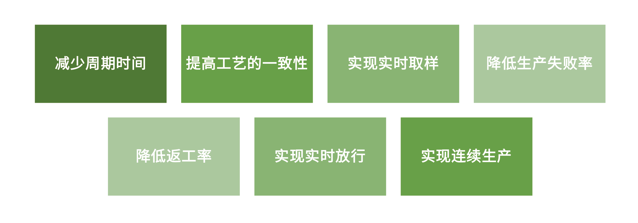 在生產過程中通過使用PAT可加速放行測試時間,進而達成以下產品實現目標: