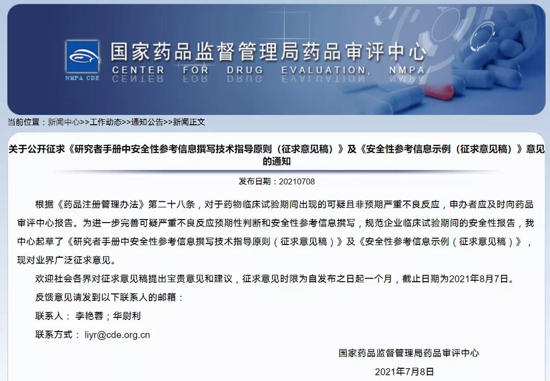 關(guān)于公開(kāi)征求《研究者手冊(cè)中安全性參考信息撰寫(xiě)技術(shù)指導(dǎo)原則(征求意見(jiàn)稿)》及《安全性參考信息示例(征求意見(jiàn)稿)》意見(jiàn)的通知