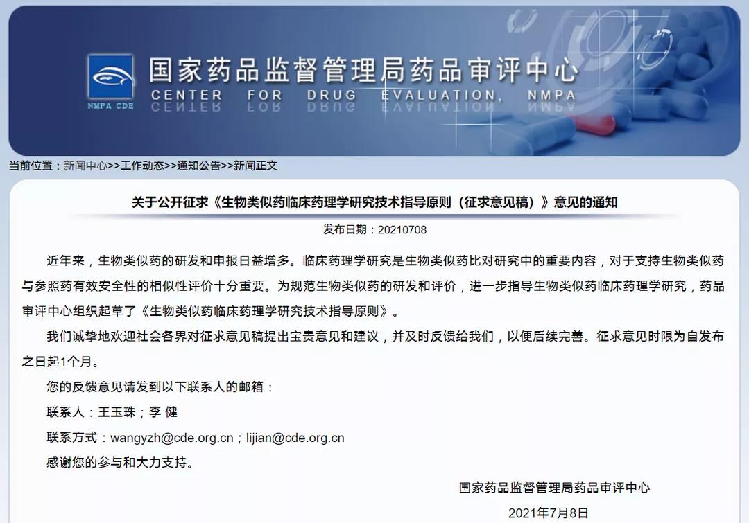 關(guān)于公開(kāi)征求《生物類似藥臨床藥理學(xué)研究技術(shù)指導(dǎo)原則(征求意見(jiàn)稿)》意見(jiàn)的通知