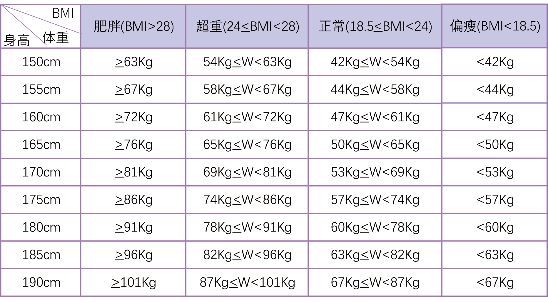 注:人們普遍通過(guò)體重指數(shù)(BMI)來(lái)判定個(gè)人肥胖標(biāo)準(zhǔn),BMI=體重/身高2(kg/m2)。