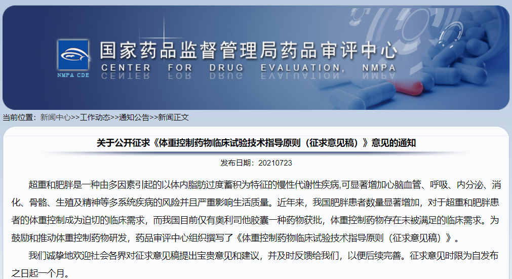 近年來(lái)國(guó)際上和我國(guó)體重控制藥物的研發(fā)逐年增多、成為研發(fā)活躍的治療領(lǐng)域,但目前國(guó)內(nèi)尚無(wú)體重控制藥物的臨床試驗(yàn)指導(dǎo)原則,為鼓勵(lì)和推動(dòng)體重控制藥物研發(fā),規(guī)范臨床研究設(shè)計(jì)和相關(guān)技術(shù)要求,CDE近期發(fā)布《體重控制藥物臨床試驗(yàn)技術(shù)指導(dǎo)原則》(征求意見(jiàn)稿),供企業(yè)和臨床研究單位參考。