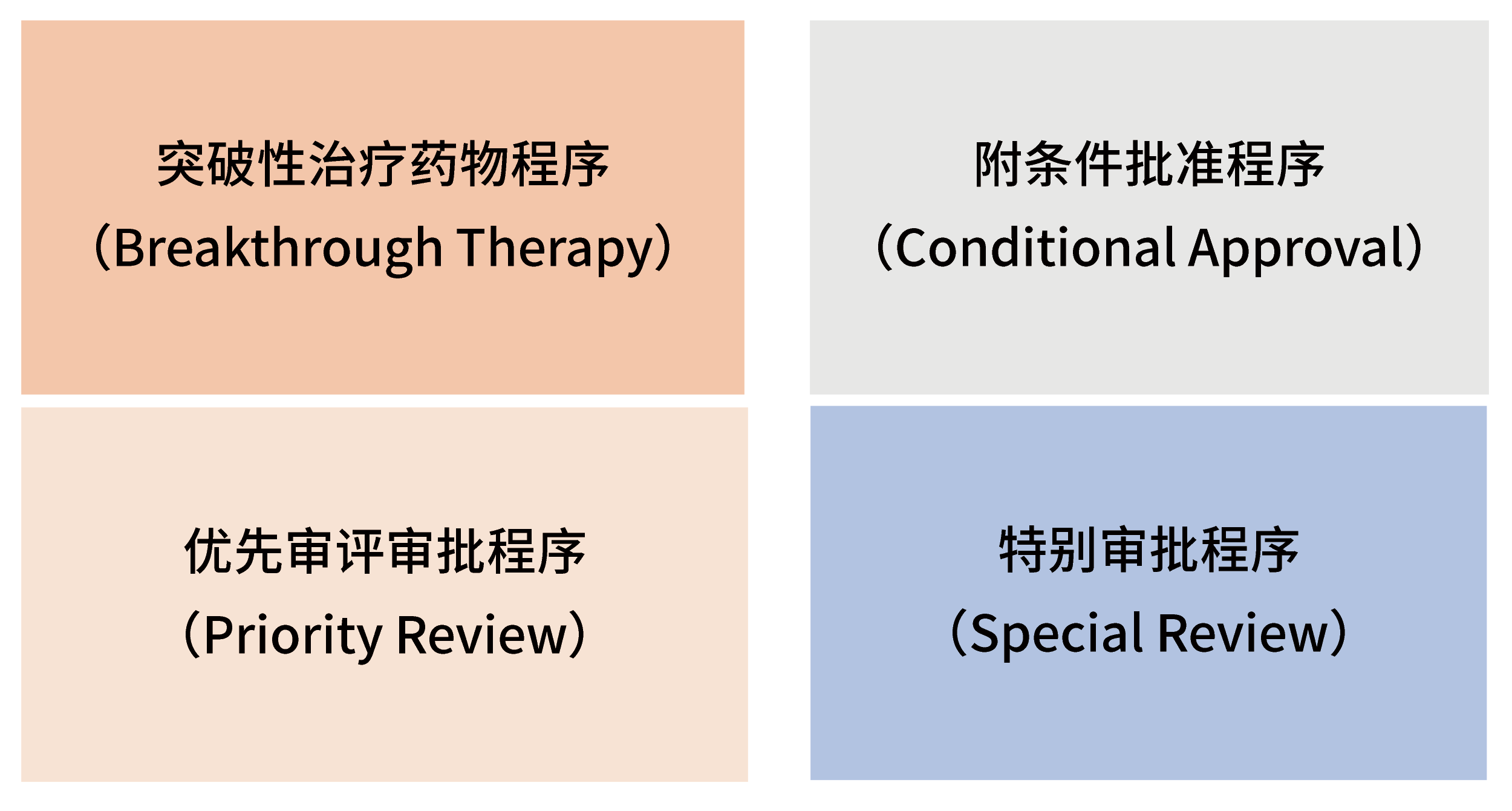 特別明確的支持以臨床價值為導向的藥物創新,為鼓勵真正的創新, 針對不同的申報階段給與相應的政策和技術支持,例如技術指導、溝通交流,優先配置資源,縮短審評時限,溝通交流后補充提交技術資料等,制定了4種給予政策優惠的藥品審評審批程序: