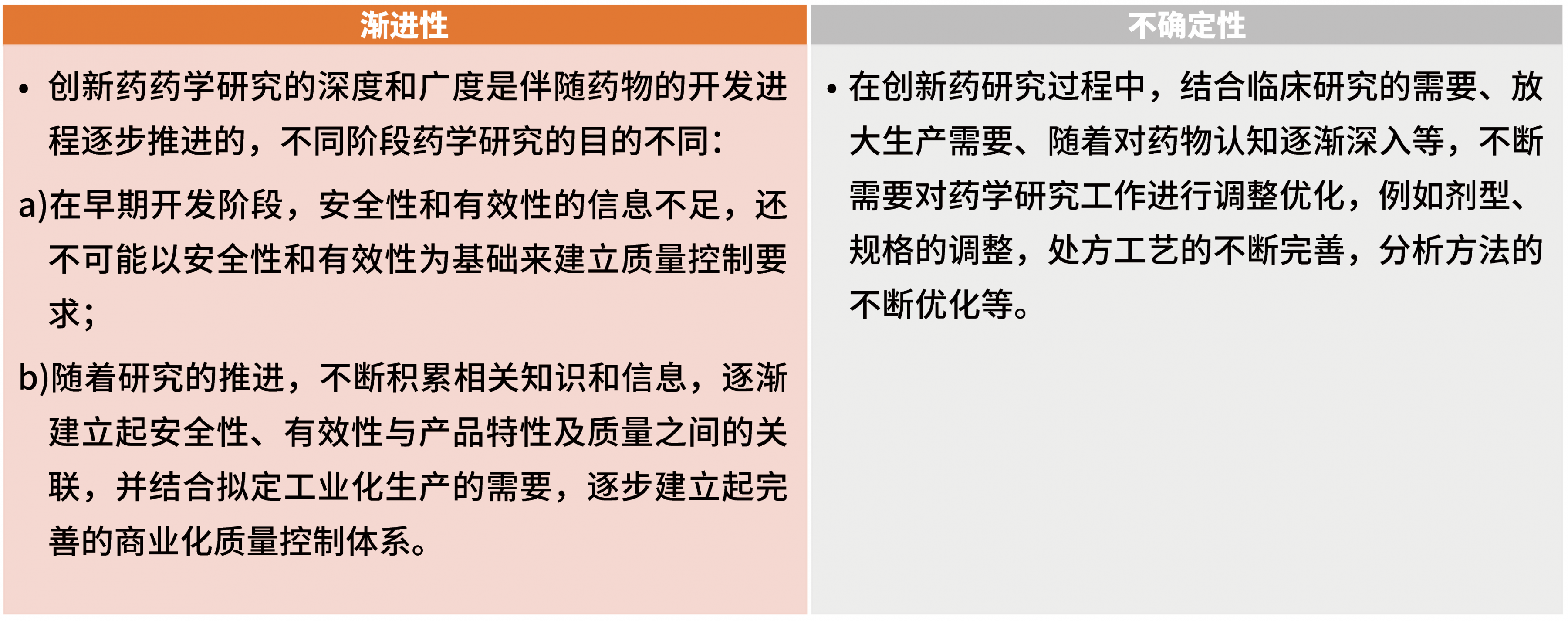 創新藥的藥學研發呈現不同于仿制藥的特有規律和研究特點,具體可歸納為漸進性、不確定性。