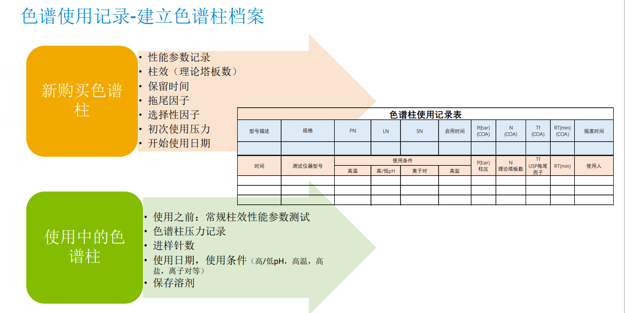 色譜柱是有生命周期的色譜分析關鍵耗材。為了保障色譜柱的正確使用,提高每一根色譜柱的產出,實驗室需要給每根色譜柱建立檔案,對其從購入到每次使用情況進行真實的記錄,保障規范使用,同時為質量管理體系建設提供原始的資料。