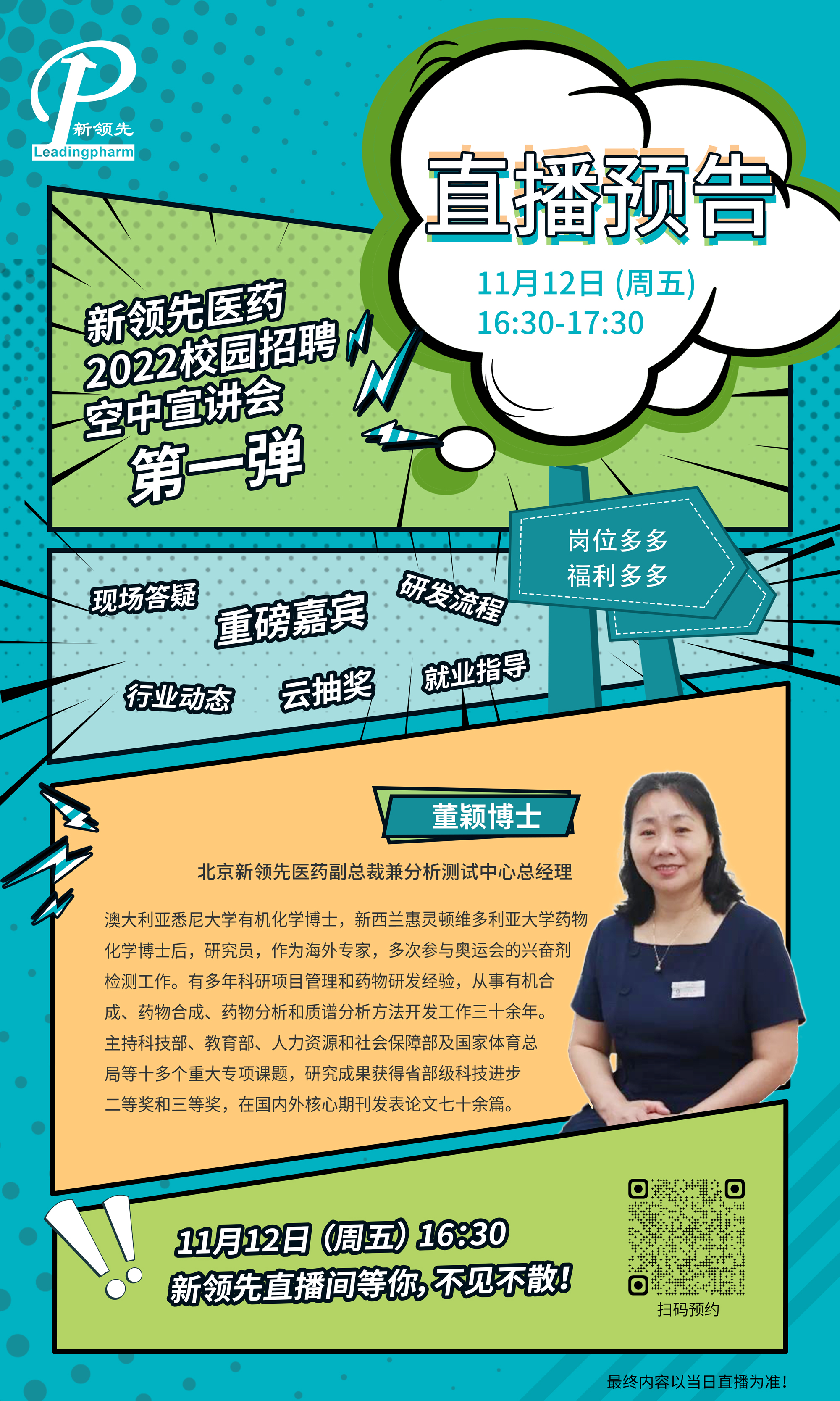 直播預告| 新領先醫藥2022校園招聘空中宣講會第一場