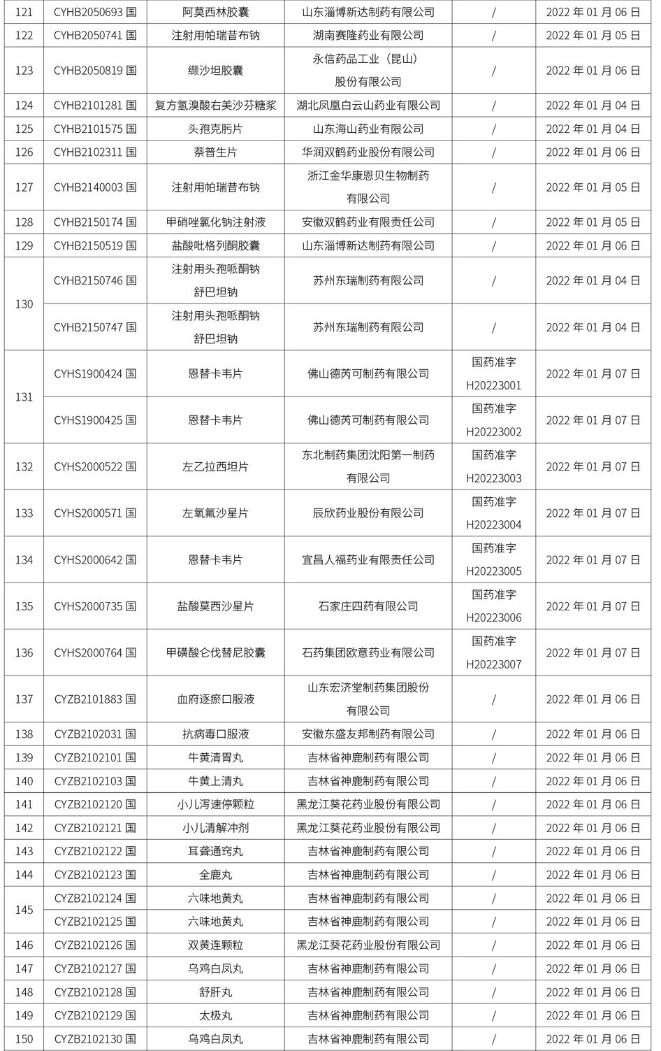 國家藥監局關于發布仿制藥參比制劑目錄(第五十批)的通告(2022年第2號)
