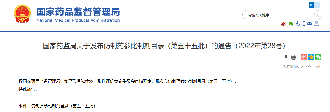 國家藥監局關于發布仿制藥參比制劑目錄(第五十五批)的通告(2022年第28號)