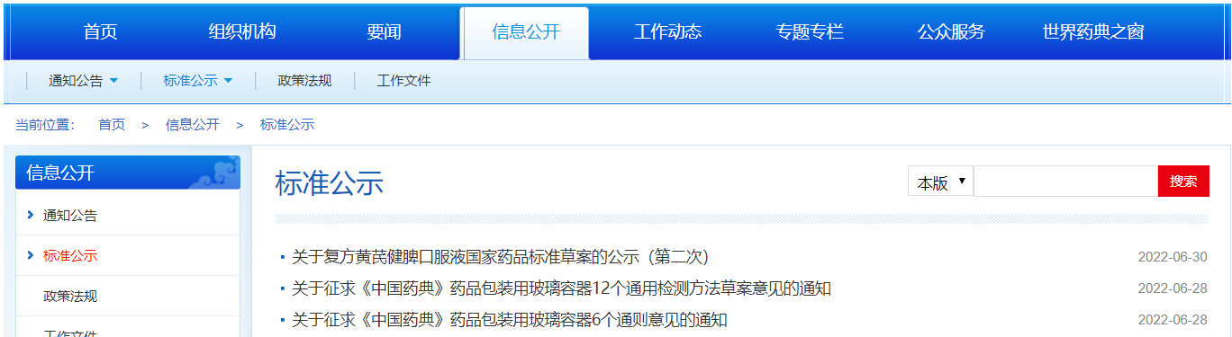 1. 本周藥典委發布關于征求《中國藥典》藥品包裝用玻璃容器12個通用檢測方法草案和6個通則意見的通知,進行復方黃芪健脾口服液國家藥品標準草案的公示(第二次)。
