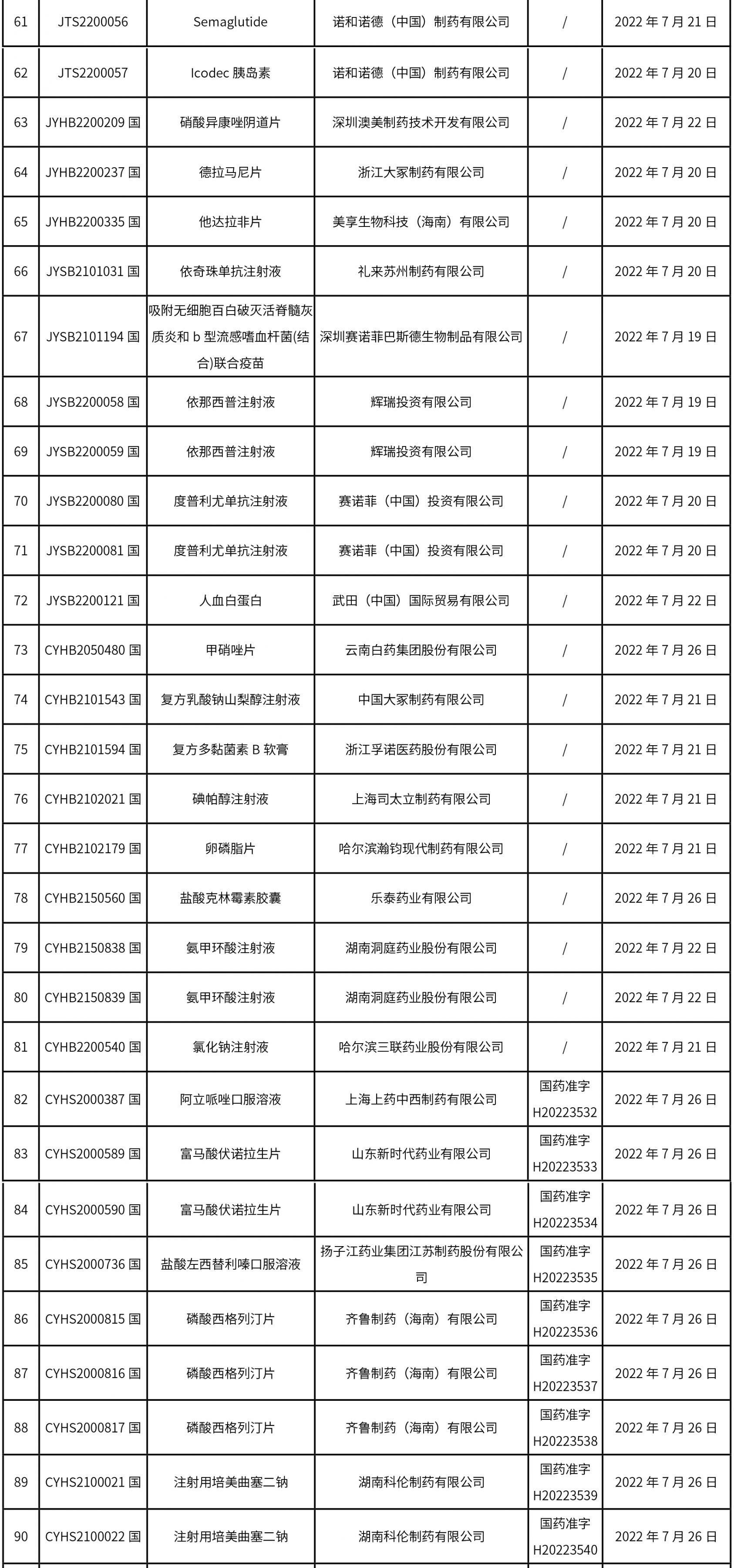 政策法規||國家藥監局發布化學仿制藥參比制劑目錄(第六十一批)(附本周法規概覽07.25-07.29)
