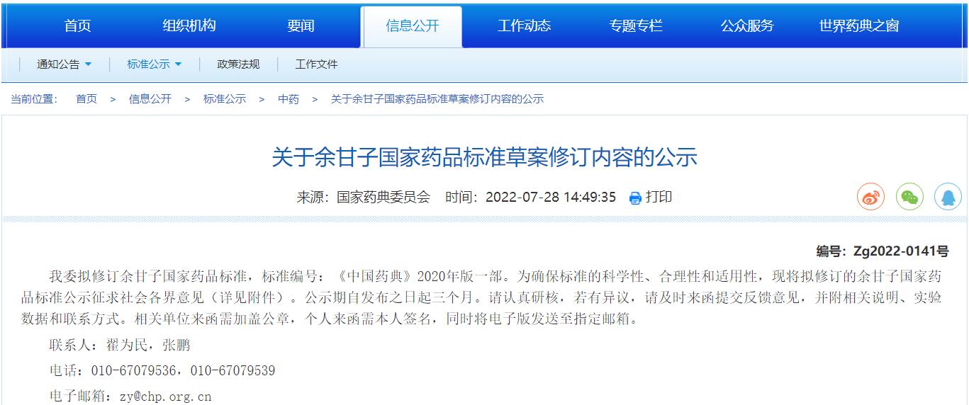 本周藥典委發布關于余甘子國家藥品標準草案修訂內容的公示。