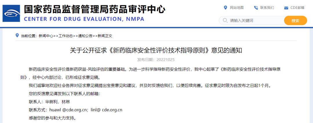 關于公開征求《新藥臨床安全性評價技術指導原則》意見的通知
