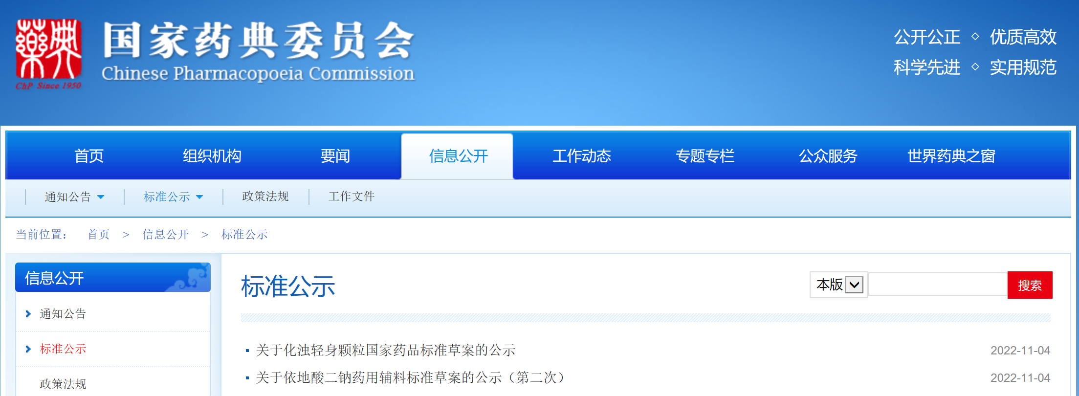 本周發布化濁輕身顆粒國家藥品標準草案和依地酸二鈉藥用輔料標準草案的公示。