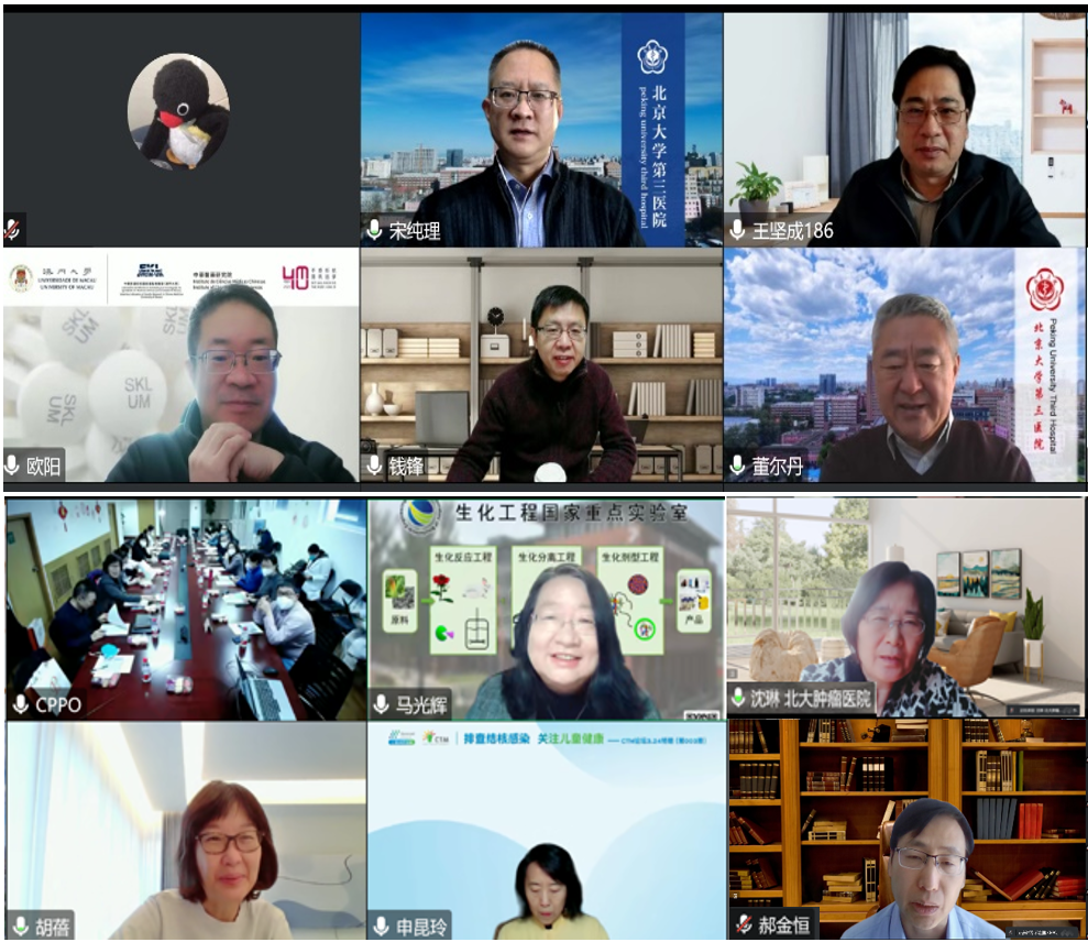 中國工程院院士、北京大學心血管研究所所長、分子心血管學教育部重點實驗室主任董爾丹院士,中國科學院院士、中科院過程工程研究所研究員、生化工程國家重點實驗室主任、國家生化工程技術研究中心(北京)主任、聯合研發中心學術委員會主任委員馬光輝院士;北京大學醫學部科研處處長王堅成教授、北京大學第三醫院副院長宋純理教授、科研處處長閆麗盈研究員、李海燕副處長、新領先醫藥董事長陶新華先生、總裁高世靜女士、副總裁康建磊先生以及聯合研發中心學術委員會委員、北醫三院兒科主任韓彤妍教授、腫瘤化療與放射病科主任曹寶山主任等40余位專家,通過線上線下的方式參加了此次會議。會議由北京大學第三醫院藥物臨床試驗機構李海燕主任和藥物臨床試驗機構劉東陽副主任共同主持。
