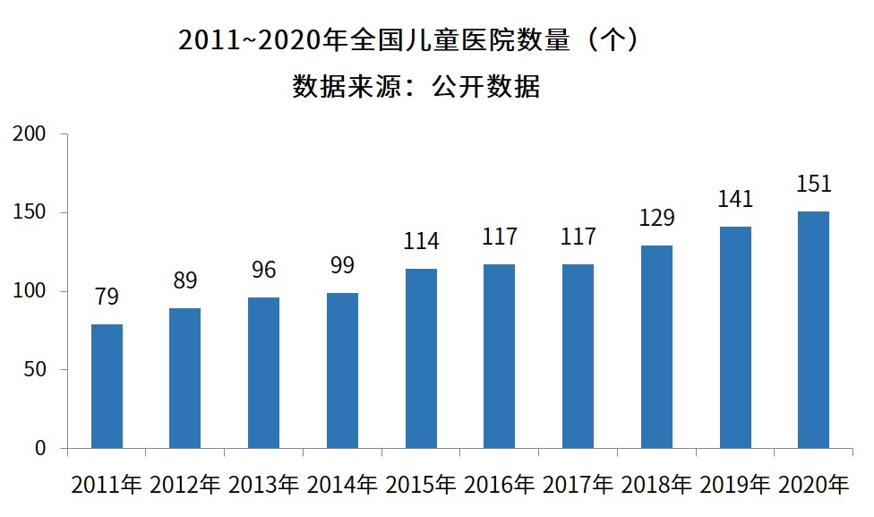 醫院醫療設施方面,國家大力加強兒科醫療服務體系建設,推動全國多地區增建兒童專科醫院、增加兒童醫院數量,成立兒科學科協同發展中心,助力解決看病難的問題。隨著兒童醫院、婦幼保健院的建設增加,為后續兒科就醫看病提供保障,提升兒科疾病就診率,促進兒科用藥市場的發展。