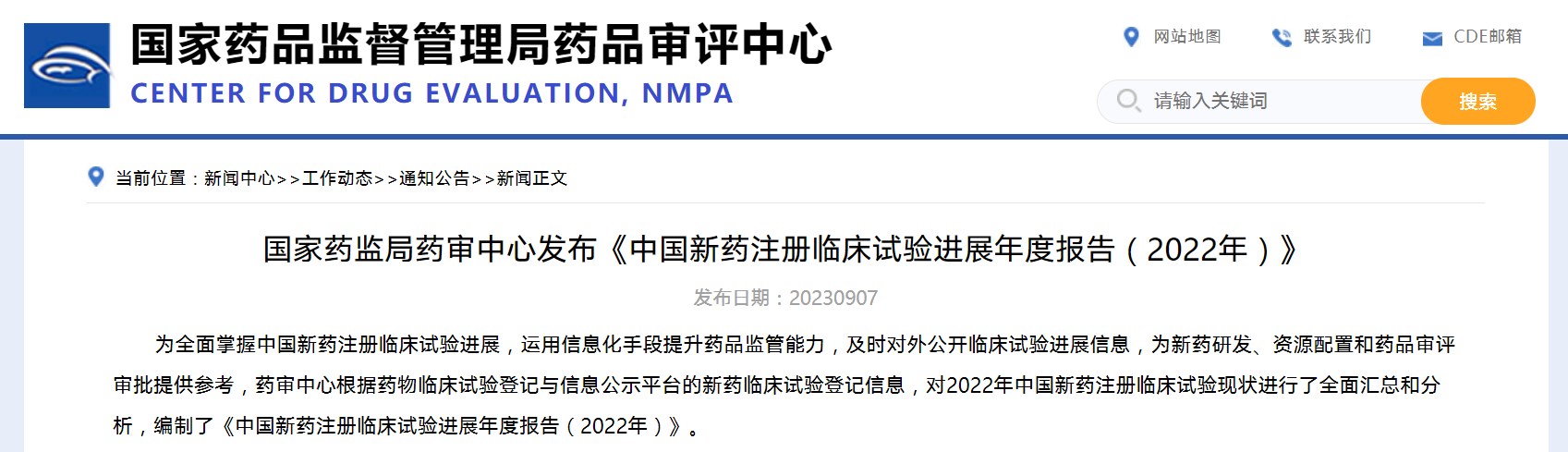 國家藥監局藥審中心發布《中國新藥注冊臨床試驗進展年度報告(2022年)》