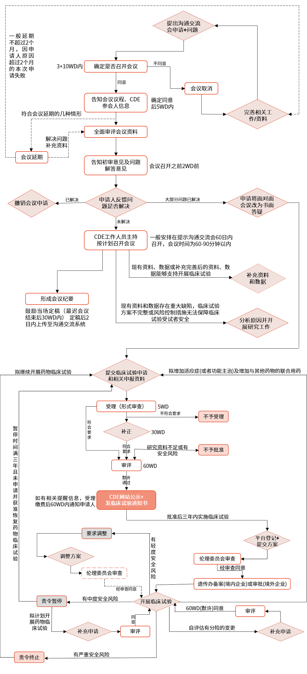 ▲ pre-IND溝通交流會、藥物臨床試驗申請流程圖