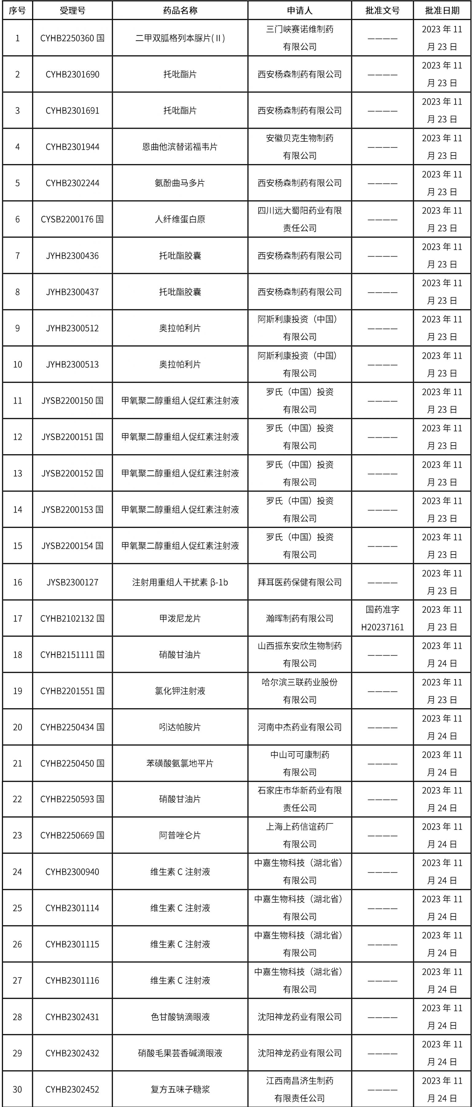 1.截止2023年12月01日 15:30本周發布64個待領取藥品批準證明文件,其中注射液13個,一致性評價品種7個。