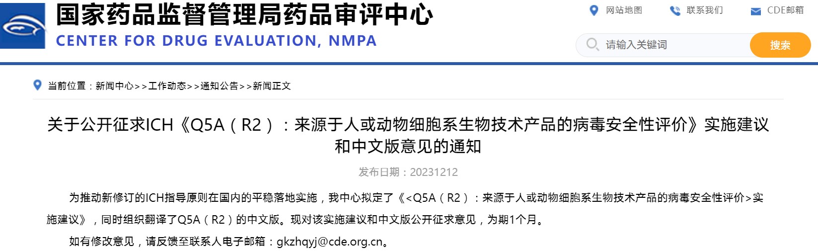 關于公開征求ICH《Q5A(R2):來源于人或動物細胞系生物技術產品的病毒安全性評價》實施建議和中文版意見的通知