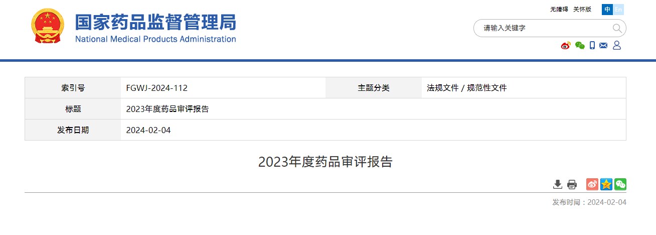 國家藥品監(jiān)督管理局發(fā)布2023年度藥品審評報告