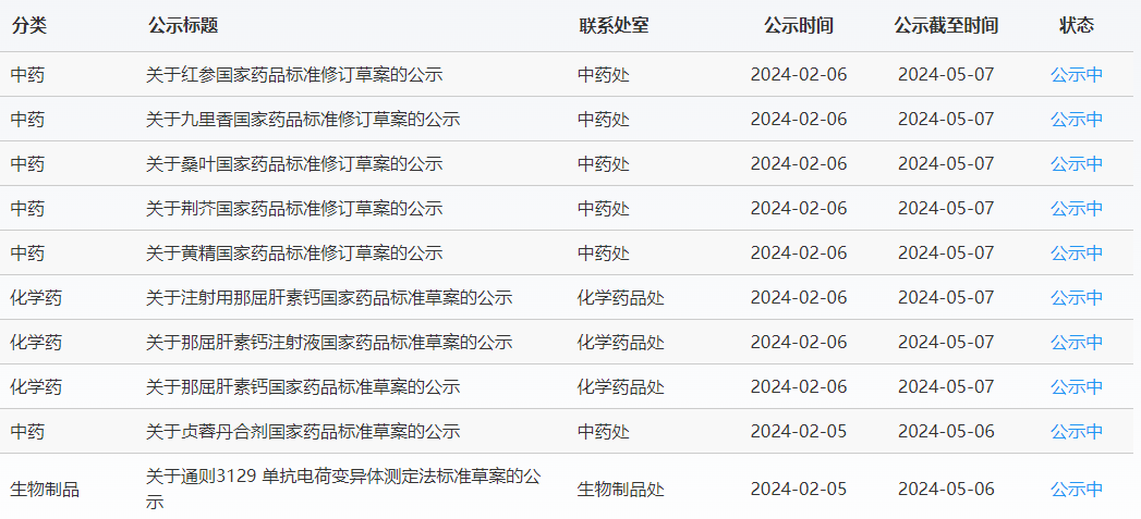 本周國家藥典委共發(fā)布5個國家藥品標準草案的公示,5個國家藥品標準修訂草案的公示。