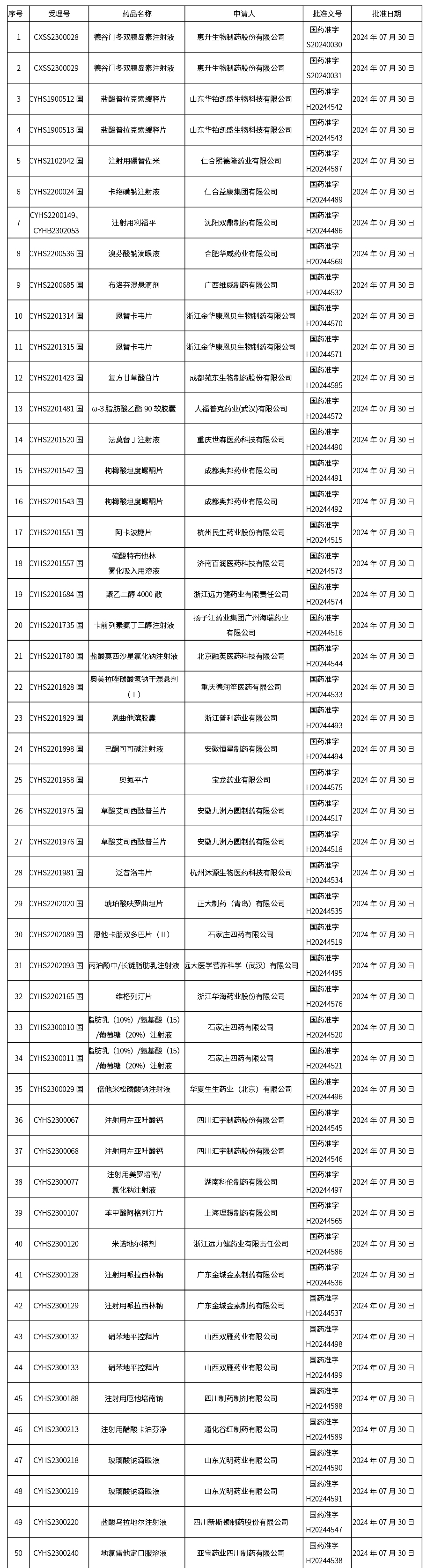 2024年08月05日中藥品種保護受理公示