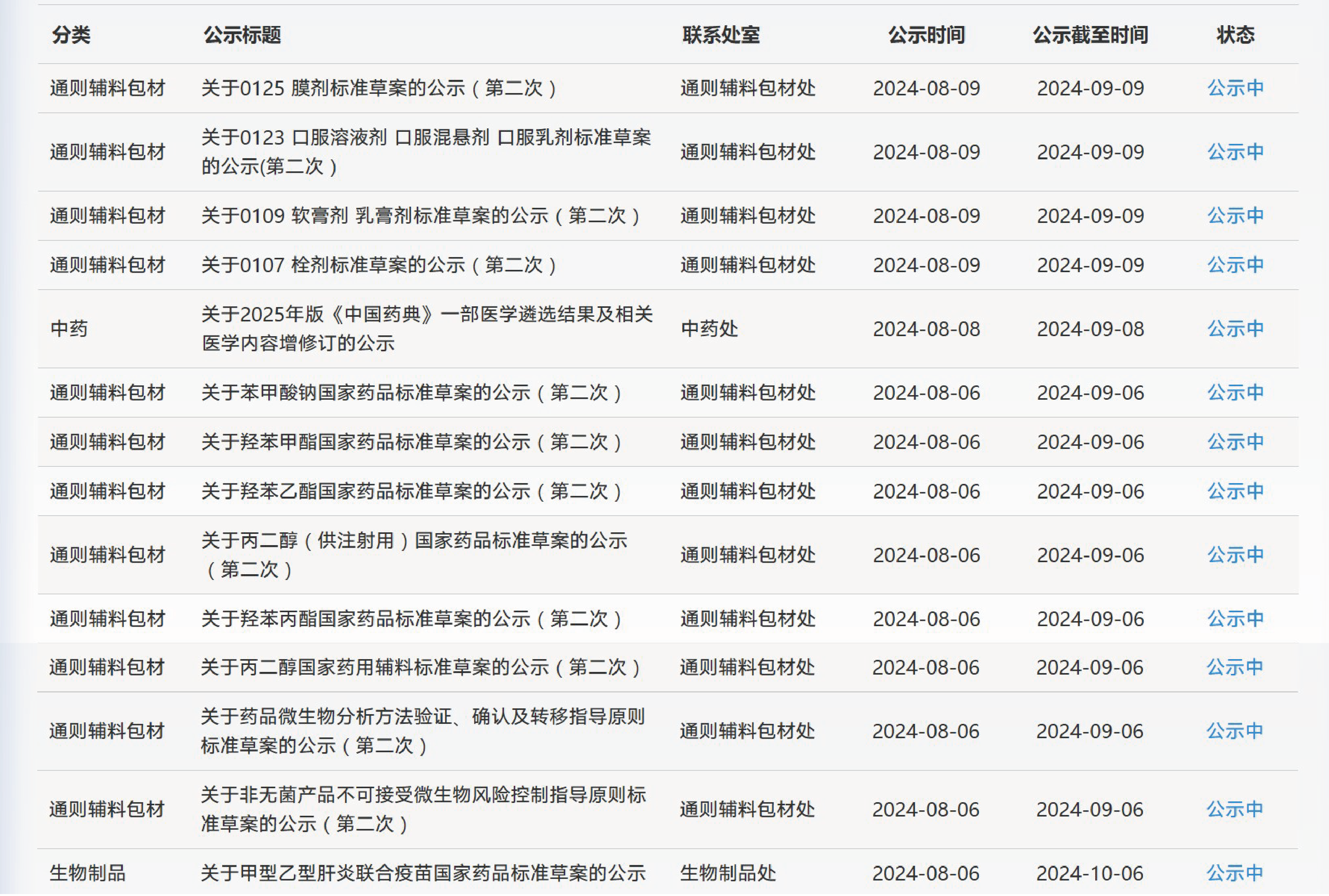 本周,藥典委發布的標準草案公示如下: