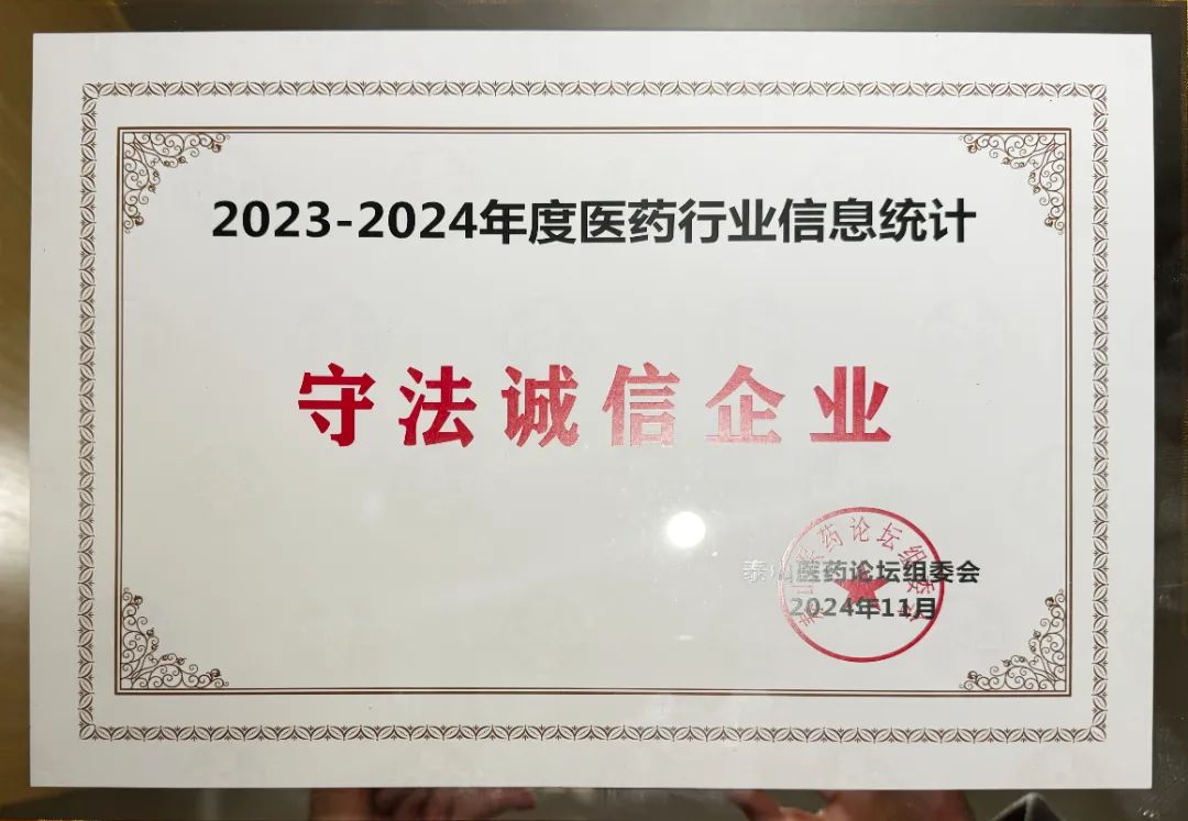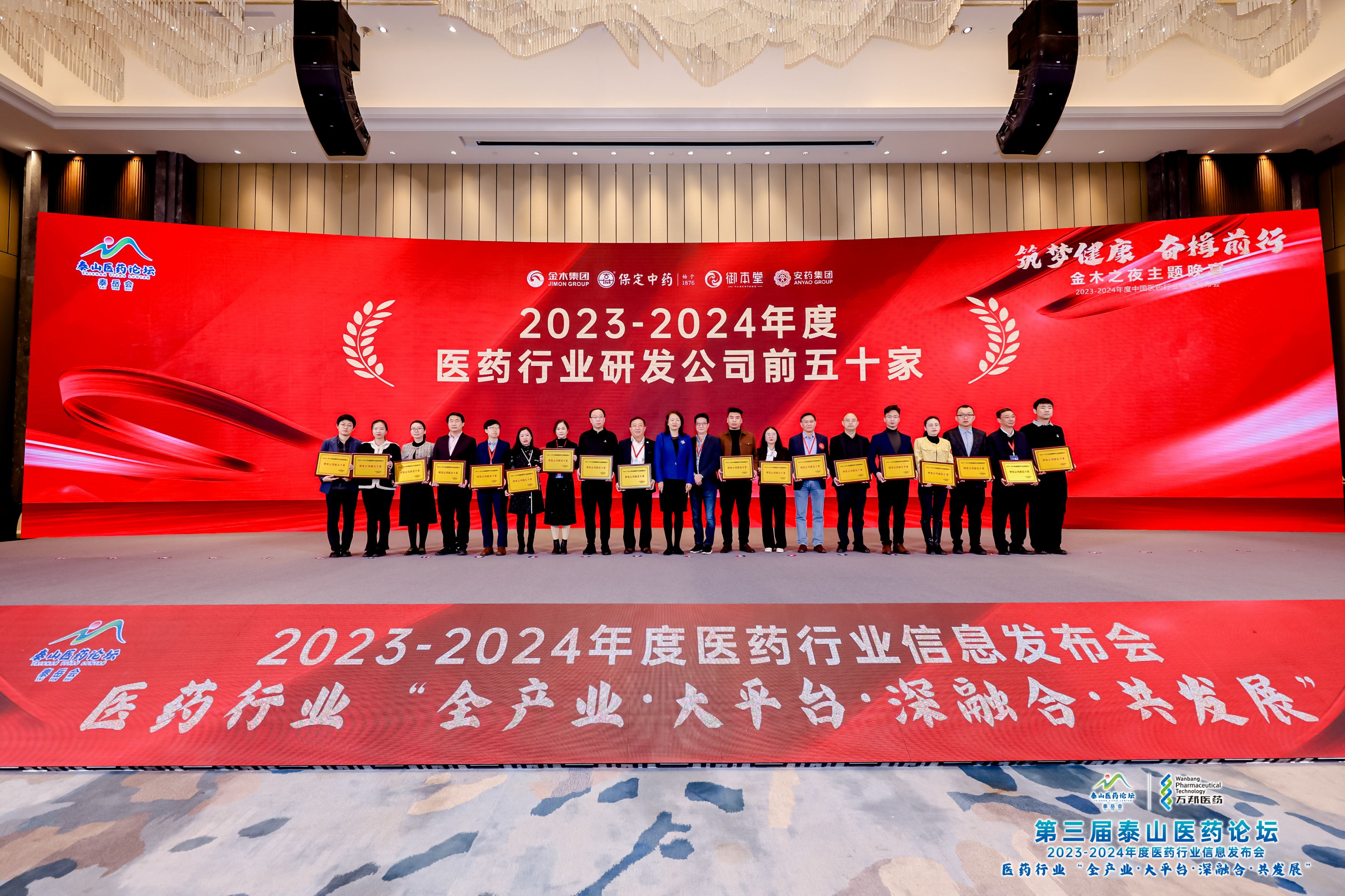 2024年11月4日至6日,第三屆泰山醫藥論壇暨“2023-2024年度醫藥行業信息發布會”在山東濟南成功舉辦。在此次論壇上,新領先醫藥憑借卓越的研發實力和行業影響力,榮獲2023-2024年度醫藥行業“研發公司前五十家”和“守法誠信企業”等榮譽。