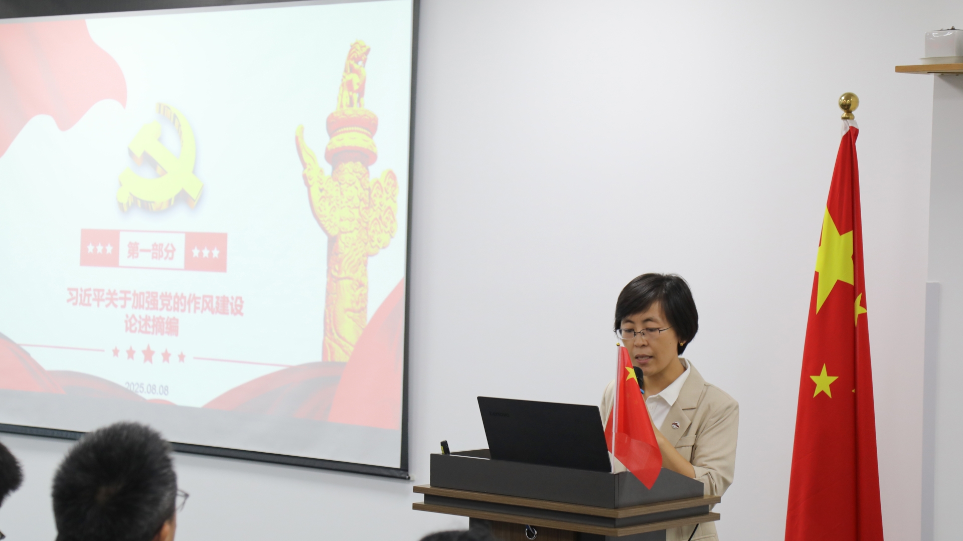 Ju Ping, Deputy Secretary of the General Party Branch of Leadingpharml and General Manager of the Preparation Center, led the study, focusing on the "expositions on the spirit of the Eight-Point Regulation" in Selected Readings on Xi Jinping's Expositions on Strengthening the Party's Work Style Construction.