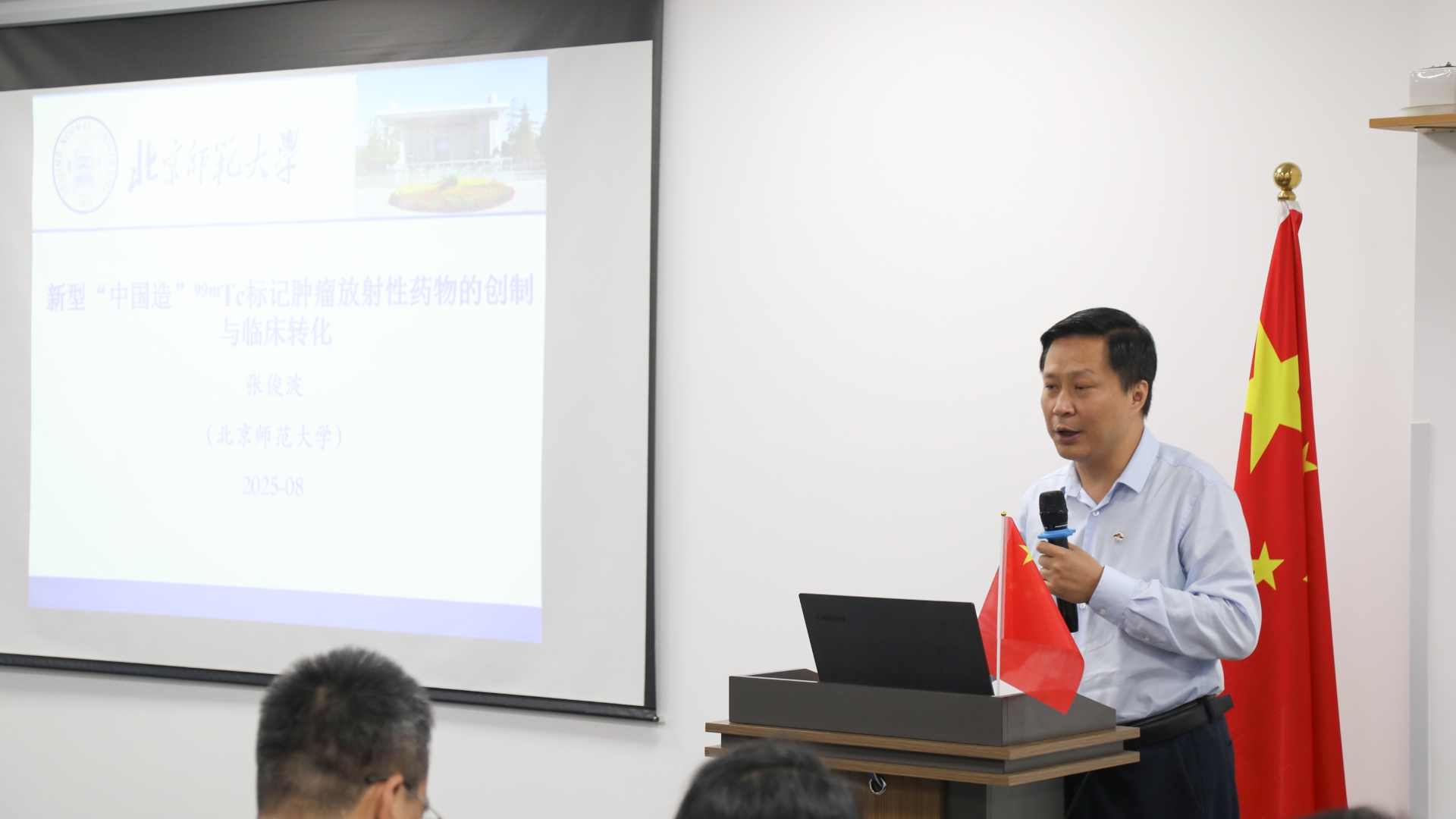 Professor Zhang Junbo from the School of Chemistry of BNU gave a report titled Development and Clinical Transformation of a New "Made-in-China" 99mTc-Labeled Tumor Radiopharmaceutical. He shared the key technological breakthroughs made by his team in the development of radiopharmaceuticals. The new "Made-in-China" 99mTc-labeled tumor radiopharmaceutical has stronger capabilities in targeted binding to tumor cells and is of great significance for the early diagnosis of tumors and prognosis evaluation.